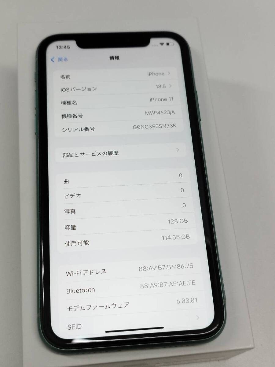 SIMフリー iPhone 11 A 2221 128 GB MWM 62 J