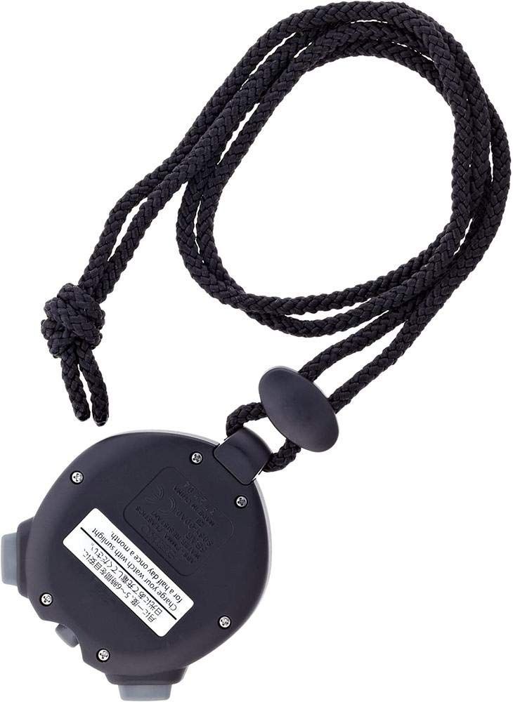 電地交換の必要がないソーラー充電ストップウォッチ。フル充電後、光の当たらない状態で約24ヵ月バッテリー持続。大容量300メモリー搭載。
