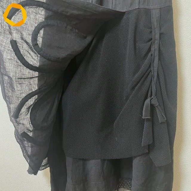 ◎商品名(タイトル):#anc エイココンドウ EIKO KONDO スカート 黒 麻 メッシュ 異素材 紐 レディース [974042]
