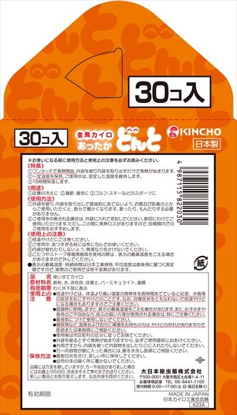 封を切るだけで暖まる使い捨てカイロ。通勤・通学に、ゴルフ、スキーなどのスポーツに、その他のスポーツ観戦にもおすすめです。約18時間持続。30個入。