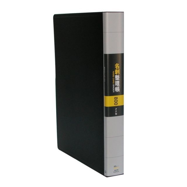 詳細情報1名刺など収納したカード゙の裏側も見えます。タテ型収納。見開きで両面18枚の名刺が閲覧で名刺整理帳黒A4ーL30穴800枚用