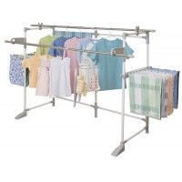 【使用時サイズ】 br 高さ約124×幅約225×奥行約75cm br 【収納時サイズ】 br 高さ約124×幅約80×奥行約16cm br カラー:ホワイト&グレー br 商品重量(約):6.3kg 【本体】 br 樹脂コーティングスチールパイプ:直径25.4/22.2mm br 【竿】ステンレス巻きスチールパイプ:直径25.4/22.2mm br 【部品】 br 成形部品:ABS樹脂・PP樹脂 br ねじ類:スチール(メッキ) 1.製品使用は改良のため予告なく変更することがあります。 br 2.製品の色調は、印刷のため多少実物と異なる場合があります。 ベランダ・庭でも使えます。 br ハンガー部は高さ調整調整可能。 br 専用伸縮竿2本付き(約1~1.8m)。 br コンパクトに折りたたんで収納可能。