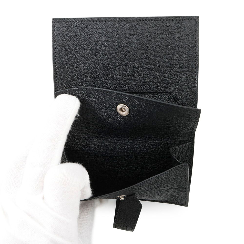 エルメス カードケース ベアン ミニ 小銭入れ付き ブラック/シルバー金具 シェブルミゾル B刻印 HERMES 名刺入れ コインケース 黒