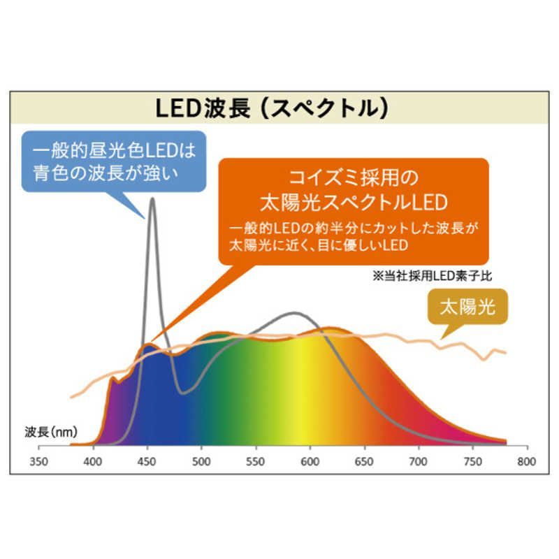 一般的なLEDと比べて青色の波長を自然光レベルまで低減し目への負担を抑えたやさしいあかりです。