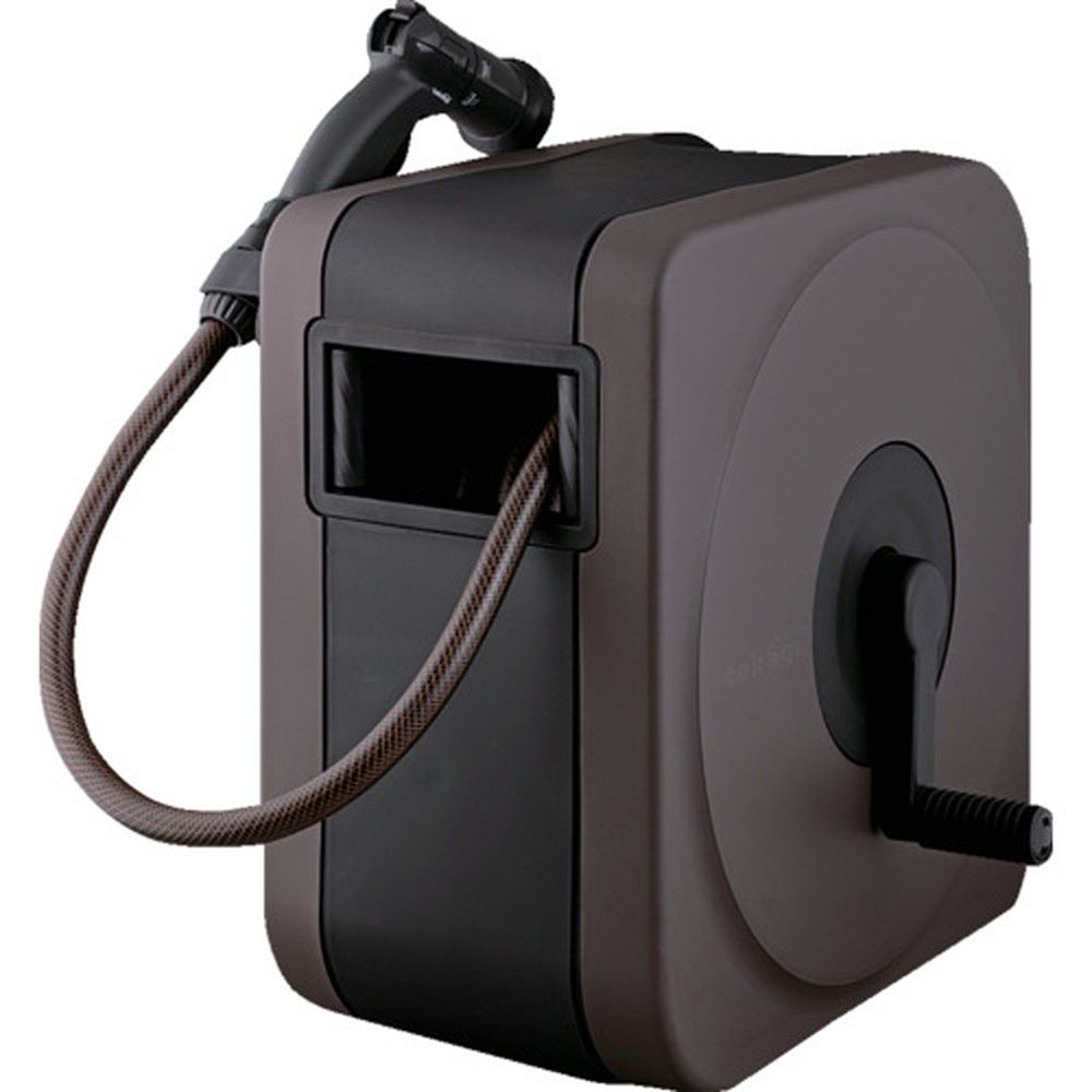 ●ホース内径12mmの30m巻きカバー付きホースリールです。●ボックスタイプでホース巻き取り時に小窓部分がガイドの様な役割をするため綺麗に巻き取れます。●藻の発生を抑える遮光層のホースを仕様しています。●耐圧性のある糸入り仕様でねじれに強いホースです。●4水形切替で流量調整可能な散水ノズル付きです。●蛇口外径が14~18mmの横水栓または万能ホーム水栓に適合