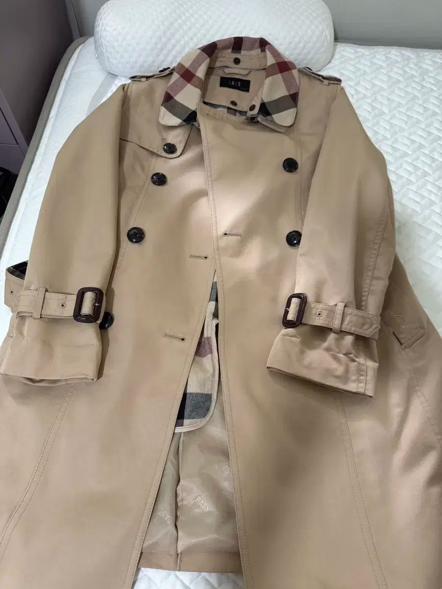 ディックのトレンチコートのサイズは150です。ベージュカラーは裏地にチェック柄が入っています。画像を見て状態を確認してください。