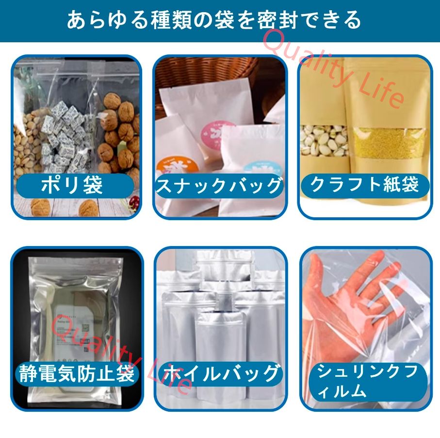 超長シールサイズ、薄フィルム、ビニール袋、アルミホイル袋、クラフト紙袋、不織布袋、その他多くの袋を瞬時にシール。 家庭用、業務用に最適。