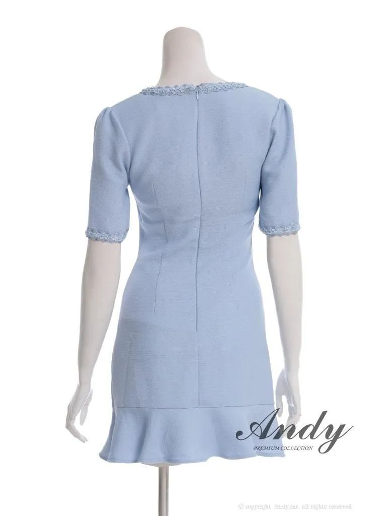 ブルーXS OF 05 OK 2962-B-2507 ANDY|アンディ パイピング| ビジューボタン| デザインポケット| 半袖| 袖あり| マーメイド| ミニドレス| キャバドレス