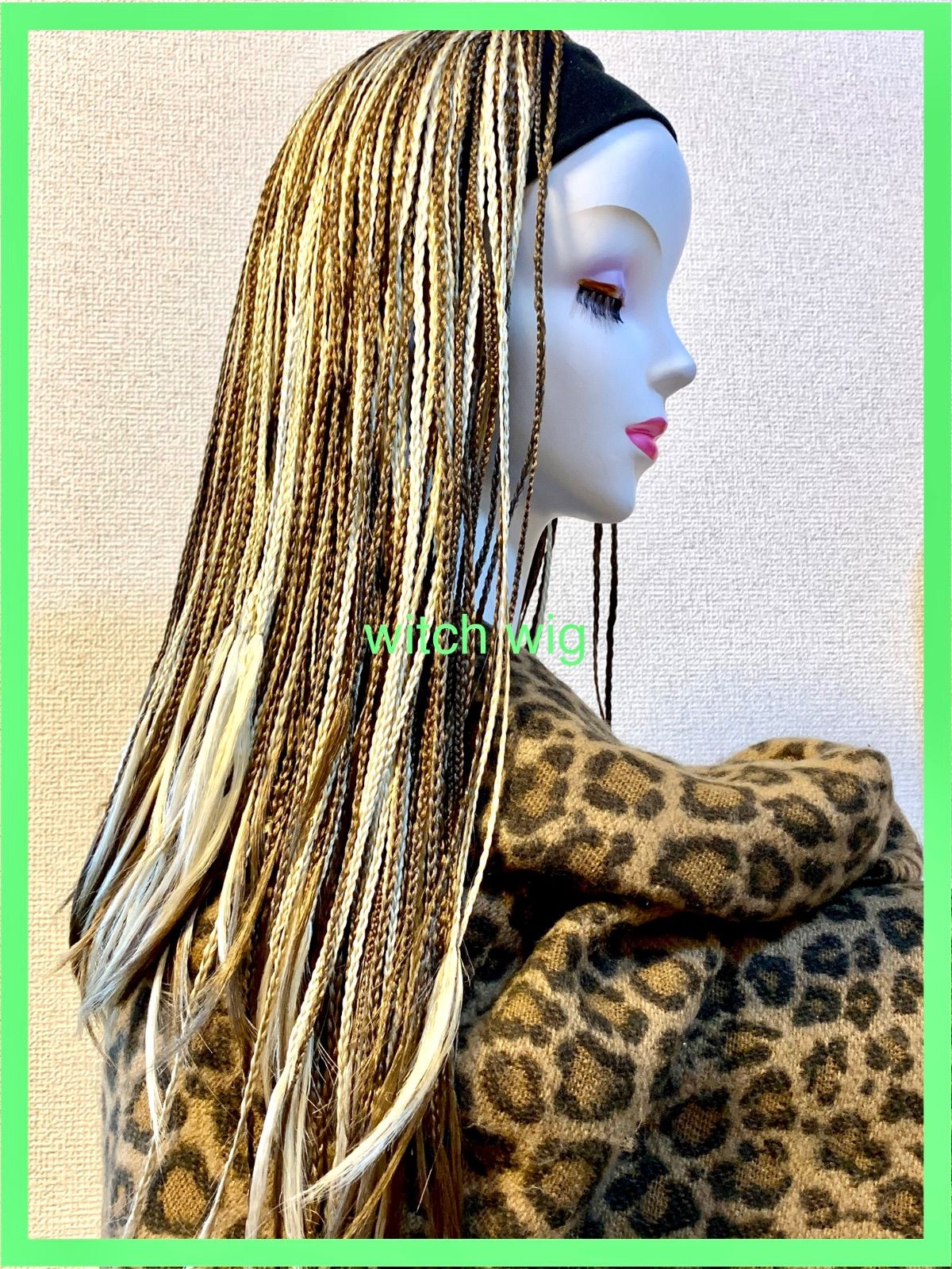 色追加致しました、こちらはブラウン主体でブロンズが混ざっている細かめの三つ編みウイッグです、簡単にブレイズヘア風です、ウイッグ回りにぐるっと黒ヘアバンドが付いてます、当店では一応すっぽり被るタイプなのでフルウィッグのカテゴリーです(注)フロントレースではないです、この手のおでこが出るウイッグは生え際の作り方が非常に難しいです、レースフロントのものが多いですが馴染ませるのも大変で難しかったりします実際おでこがきれいで広い方はしっくりくるのですが、、、実際コーンロウやブレイズにするのもめんどいですし、実際の所帽子などでカッコよく決めた方が早いと思います、フルウィッグとしては多少の重さがありますので、ダンスなどで激しくお使いの方はバシバシピンで止めて下さい☆