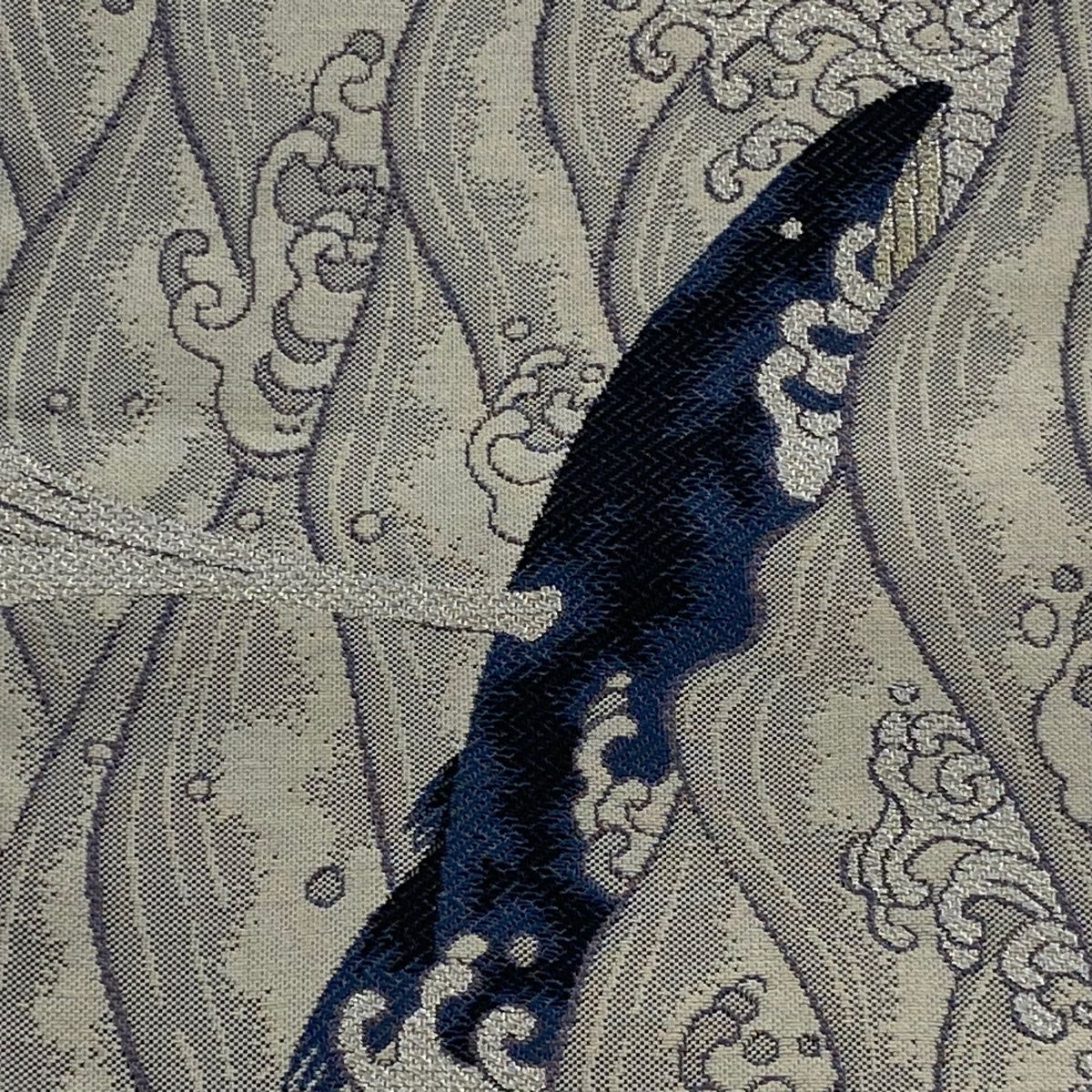 半幅帯 京西陣 鯨 波 金糸 灰色 正絹
