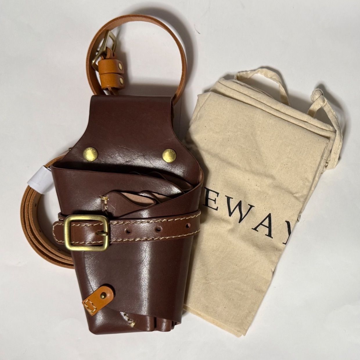 姫路レザー シザーケース タイドウェイ TIDEWAY 6丁 レザー 本革 ブラウン 6丁差し 革ベルト付き 美容師 理容師 トリマー スタイリスト モデル