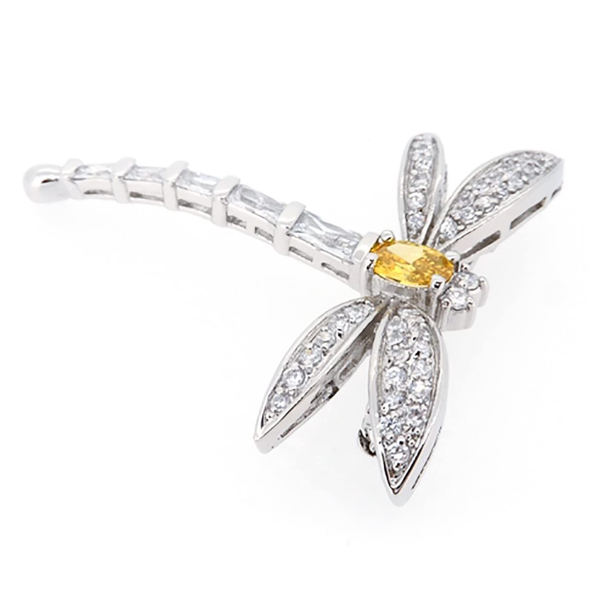 見事なビーデザインのカナリアシルバートーンブローチ。 ミツバチの羽は金の縁のメッキで囲まれ、ラウンドカットの透明なCZストーンを誇示しています。