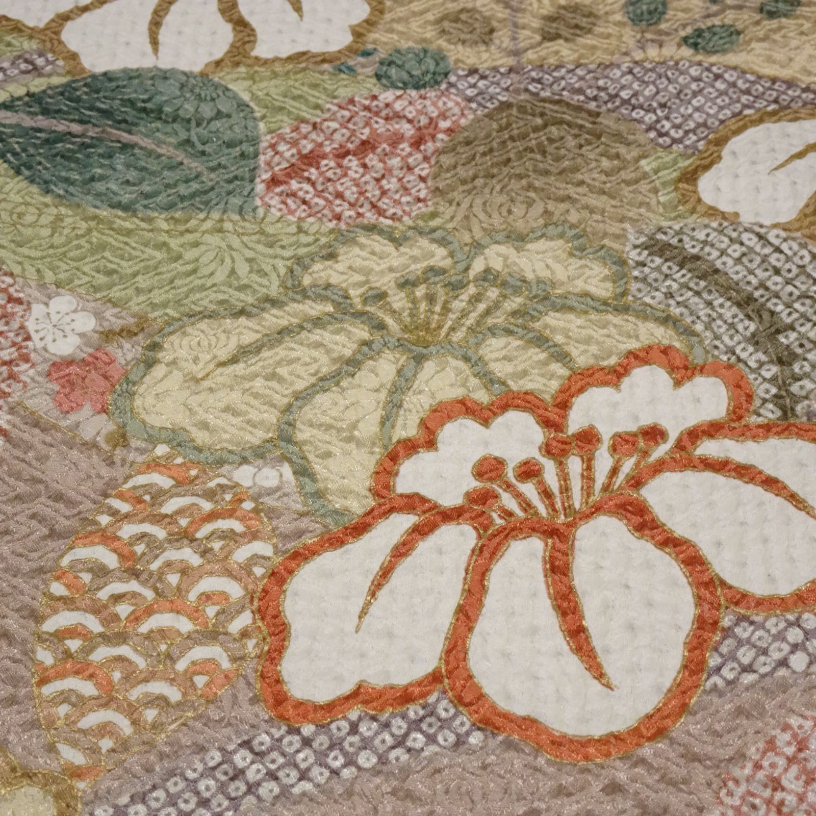 綸子 訪問着 着物 花 膨れ織 232114
