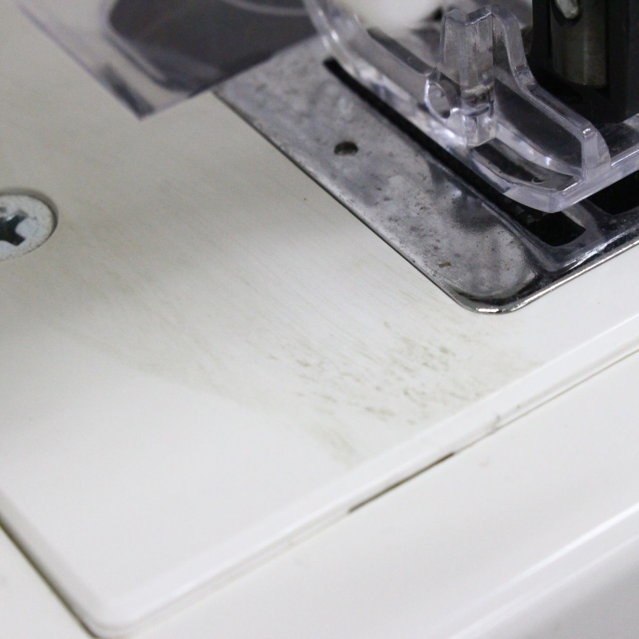 針の近くの台のところに汚れが見られます。