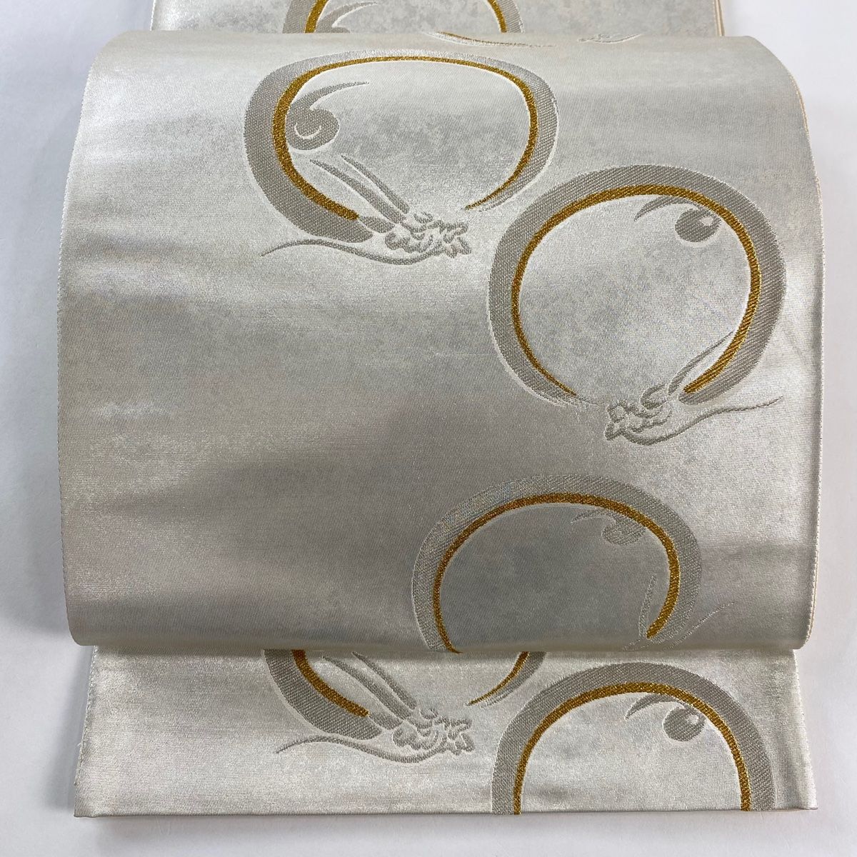 袋帯 龍 金銀糸 箔 銀色 六通 正絹
