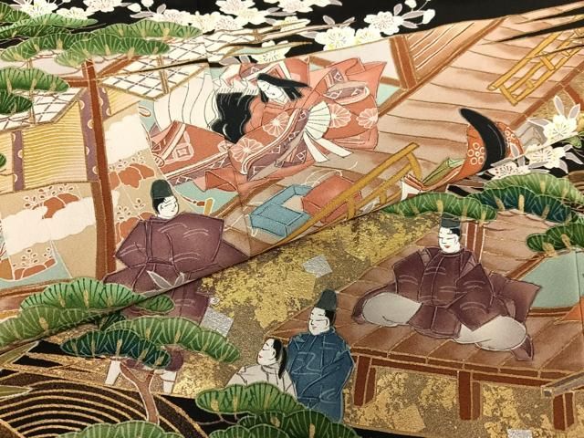 平和屋着物 金彩友禅作家 金彩の魔術師 堀省平 金煌織 黒留袖 松竹梅人物風景文 金彩 正絹 zg