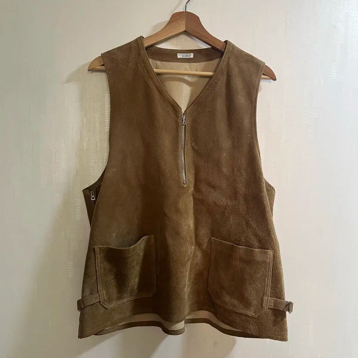 ピッグベル スウェード ベスト [3] サイズです。柔らかい スウェード 素材で 高級感 感じ を出品します。前面に ジッパー ディテール と ポケット があり 実用性 を追加しました。