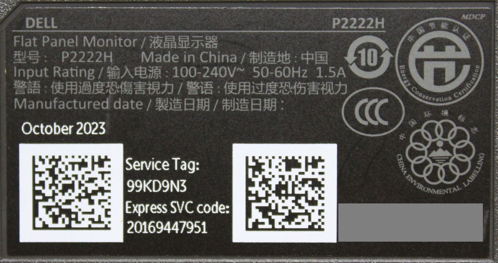 71551 DELL 21.5型 モニター P 2222 H み
