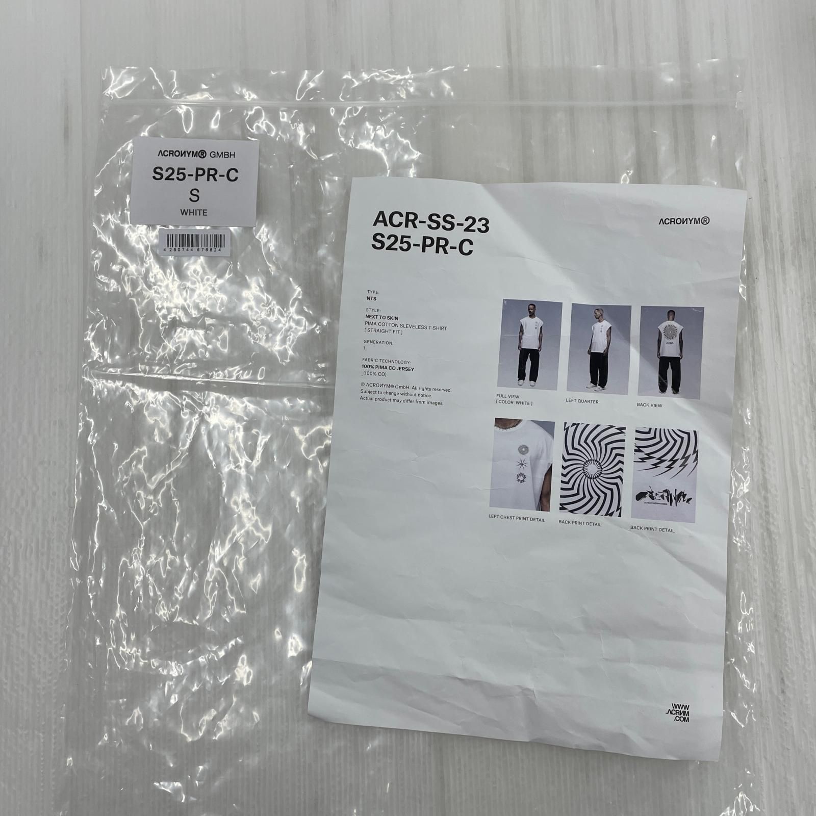 ACRONYM PIMA COTTON SLEEVELESS T-SHIRT S ホワイ