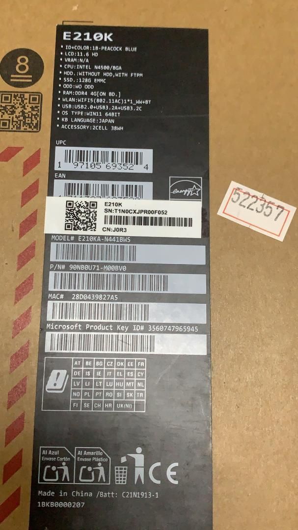 ASUS Vivobook Go 12 E 210 KA メーカー再生品 522357