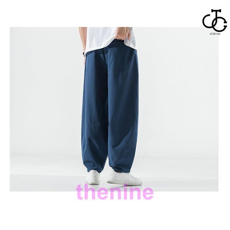リネンパンツ メンズ サルエルパンツ 無地 ワイドパンツ 麻パンツ 綿麻風 通気性 薄手 ゆったり 夏ズボン サマー 父の 2022