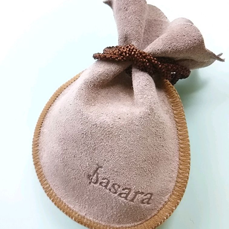 写真にありますbasaraオリジナル革袋にリボンをつけた簡単なものになりますがよろしければお申し付け下さい。