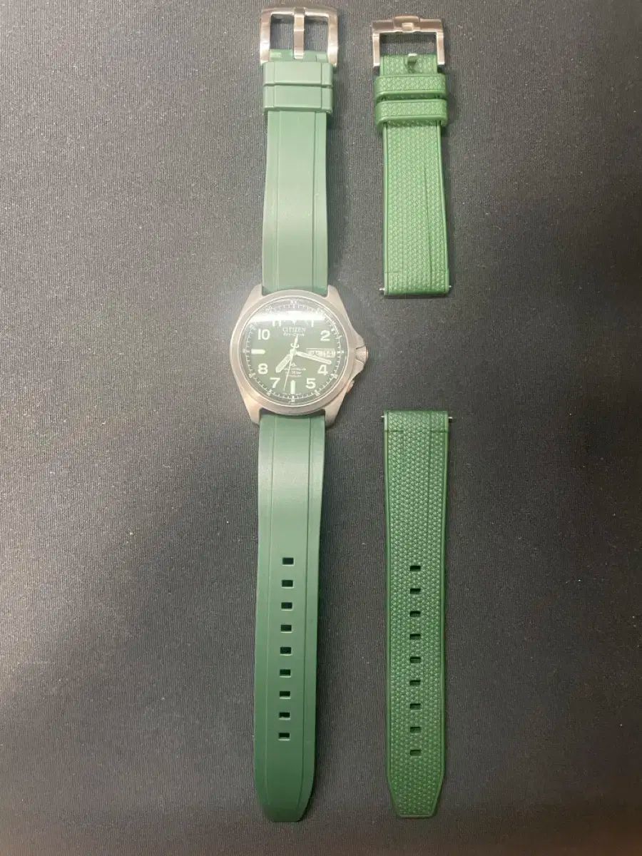 緑の文字盤に似合うクイックリリース ラバー ストラップ2種もお付けします!