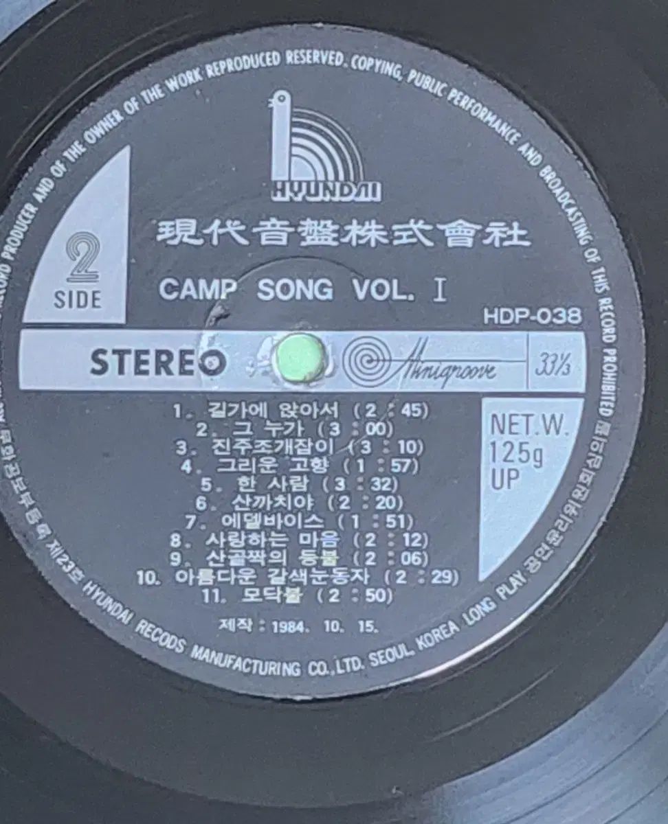 マロニエの思い出 LP キャンプソング Vol, 1 です。キラキラ星、若い恋人たち、道端に座ってなど、思い出のキャンプソングが収録されています。