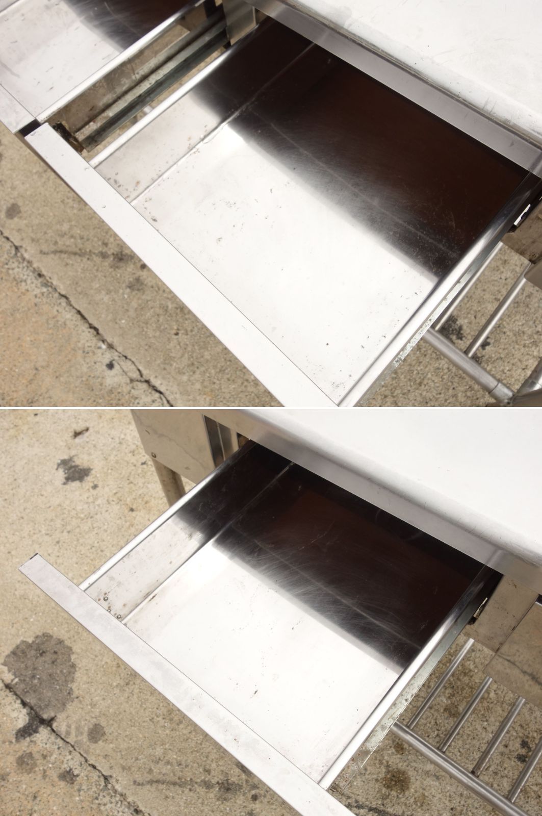 M サンウェーブ 業務用 厨房 作業台 棚 引き出し ステンレス バックガード 幅1200 奥行600 高さ800~950 Fe 1937