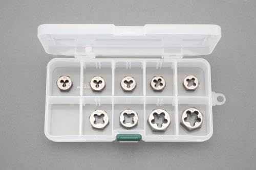 材質:SKS_2^サイズ:(並目):M3×0.5・M4×0.7・M5×0.8・M6×1・M8×1.25・M10×1.5・M12×1.5(細目):M10×1.25・M12×1.25^ケースサイズ:185×100×35(T)mm