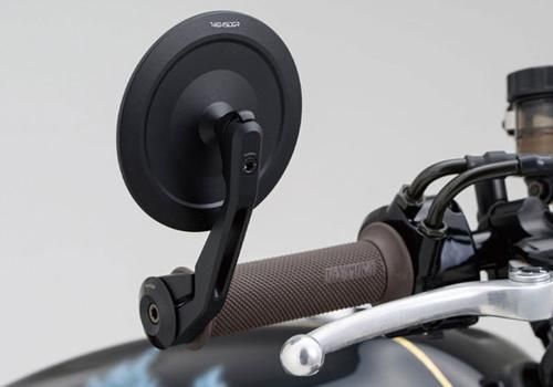 ヨーロッパで流行の厚さ5mmの超薄型ミラーヘッドのバーエンドミラー。