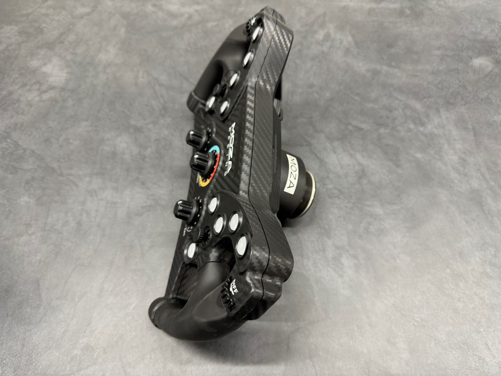 シムレーシングの没入感とリアリズムを追求した300 mm バタフライ デザイン。MOZAのGT スタイル レーシング ホイール