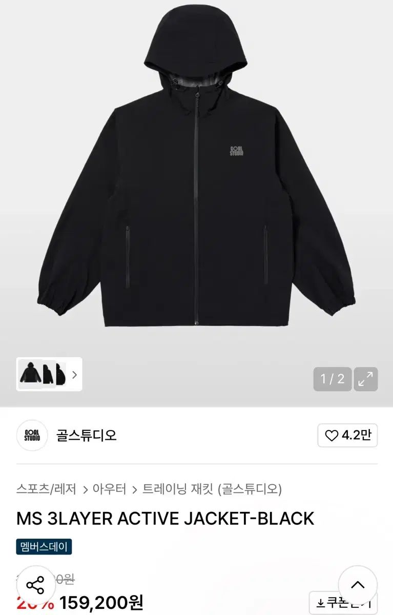 GOALSTUDIO(ゴールスタジオ) MS 3レイヤー ブラック ジャケットです。3-Layer 生地で生活 防水可能です。 WHO 달려있어서 갑작스러운 비에도 有用하게 쓰일 것 같아요.