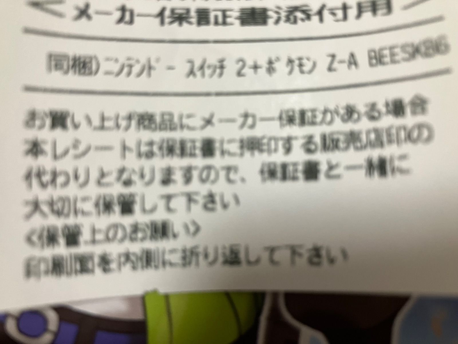 保証書添付用レシートあり