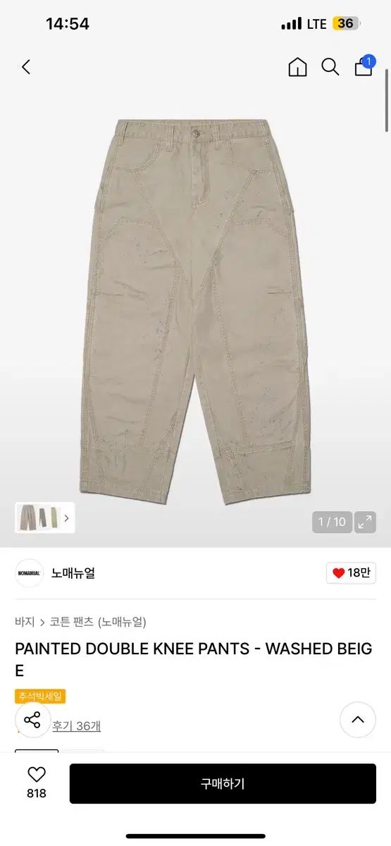 PAINTED DOUBLE KNEE PANTS ー WASHED BEIGE