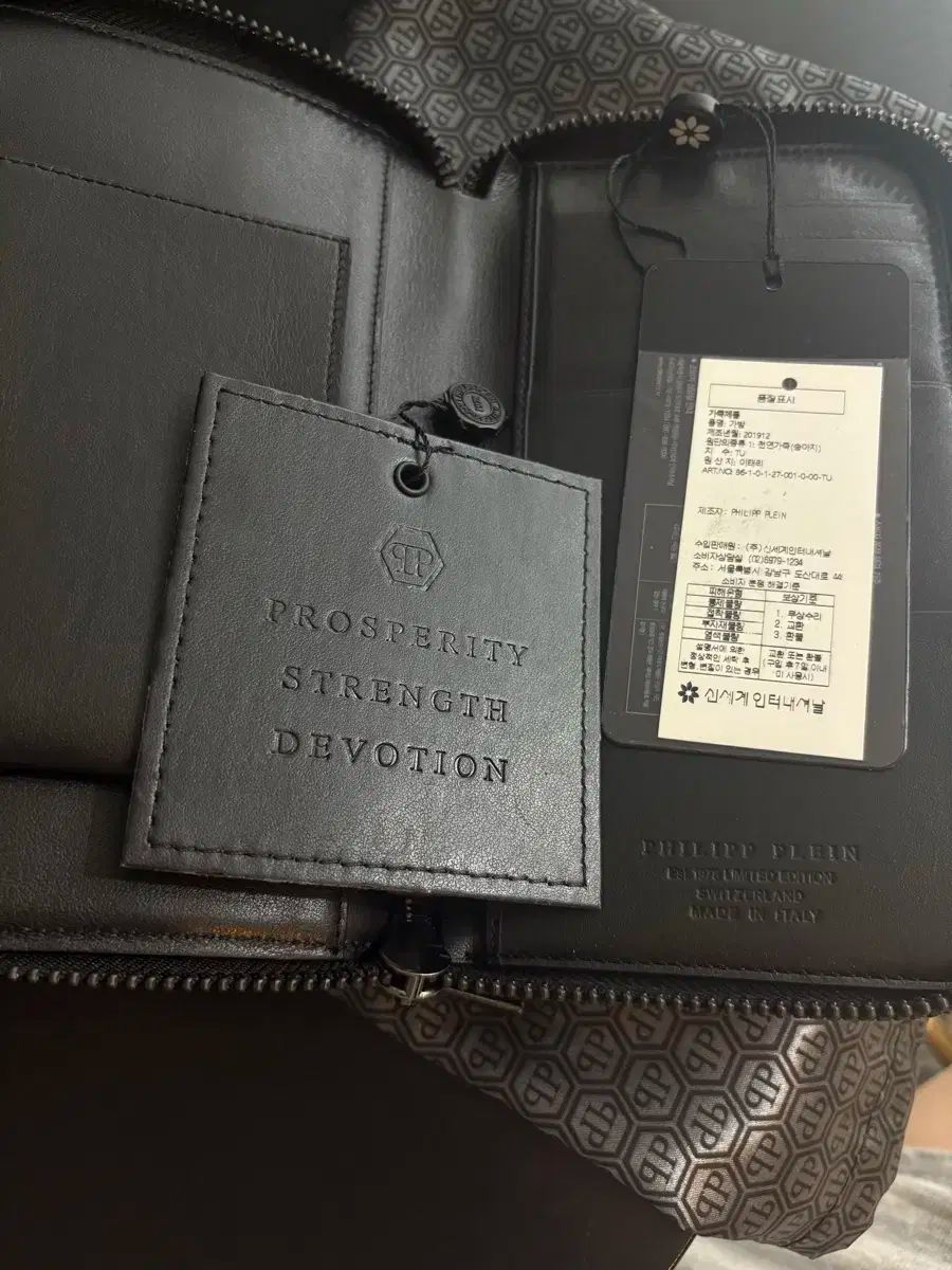 これはタグ付きのフィリッププレインのメンズクラッチです。