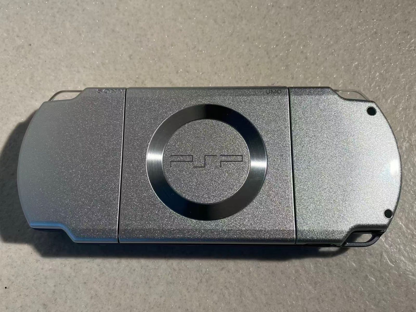 アイスシルバーのPSP-2000 IS、取扱説明書とUMD付き、良好な状態。