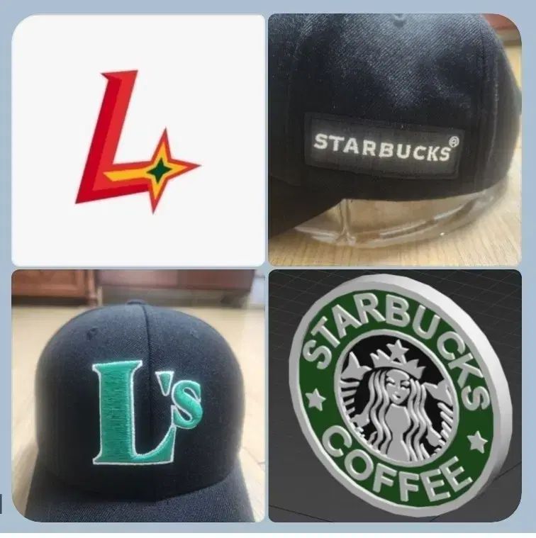 SSGランダースのロゴとスターバックスのロゴが黒いボールキャップに刺繍されています。帽子の側面にはスターバックスの刺繍パッチが付いています。