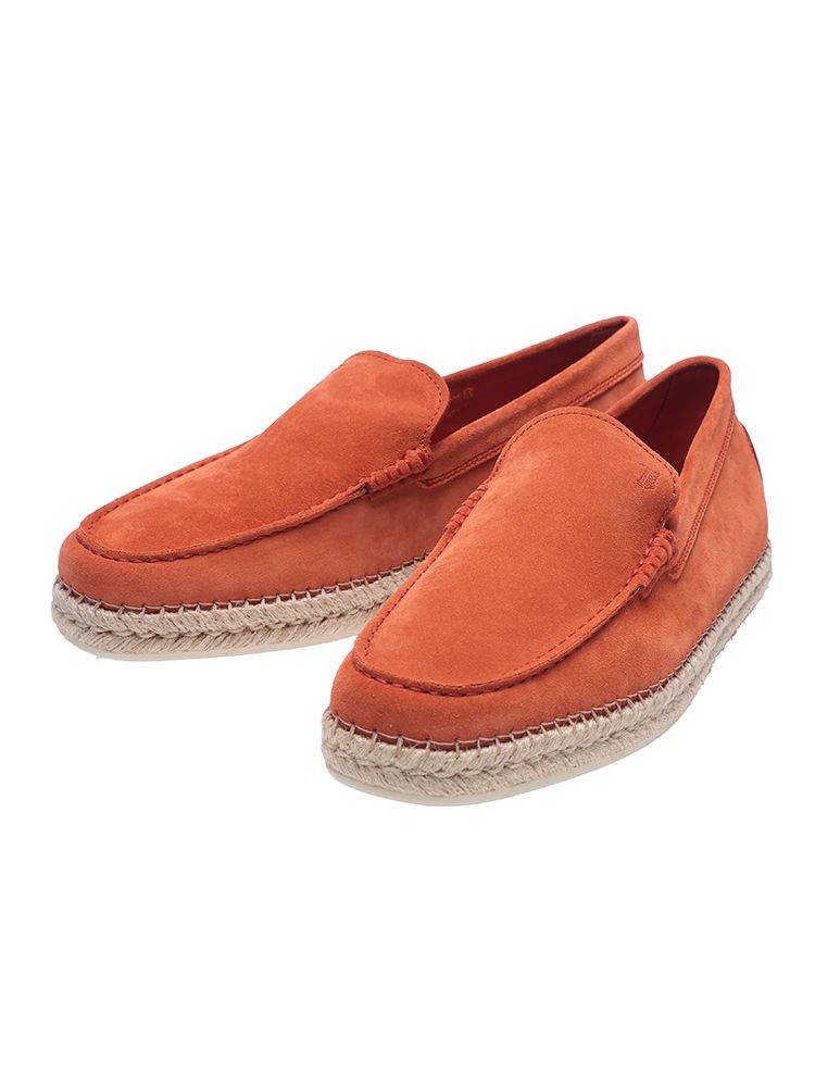 20世紀初頭イタリア、フィリッポ・デッラ・ヴァッレが開いた小さな靴工房から始まったTOD'S。上質なスエードを使用したスリッポンシューズです。ジュートソールと組み合わせたエスパドリーユ風のデザインが、リゾート感あふれる軽快な足元を演出します。ホットスタンプのモノグラムロゴや、踵部分に配されたアイコニックなラバーペブルがさりげないアクセント。素足でも快適な履き心地で、大人のカジュアルスタイルを上品に仕上げる一足です。
