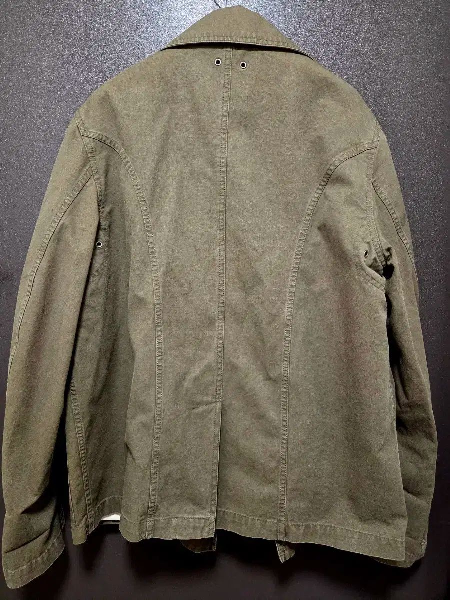 オープンプロダクトのカーキジャケットです。独特な襟のデザインと魅力的なカラーが魅力のアウターです。