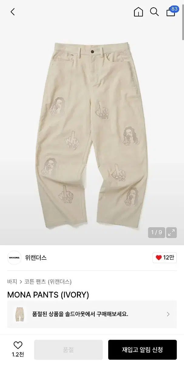 WKNDRS(ウィークエンダーズ) MONA アイボリー コットン パンツ L サイズです。独特のプリンティングが魅力的な商品です。