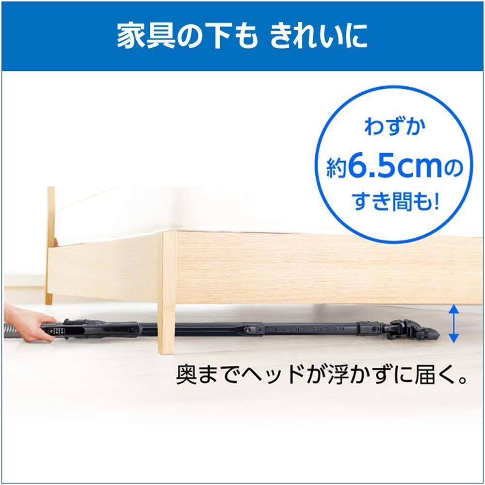 家具の下も奥までしっかり届くので、わずか約6.5cmのすき間もキレイにできます。