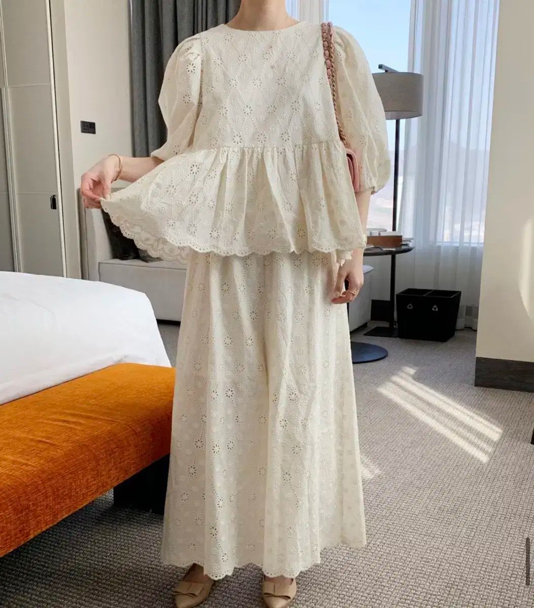 ベージュ色で、サイズフリーです。総丈 92