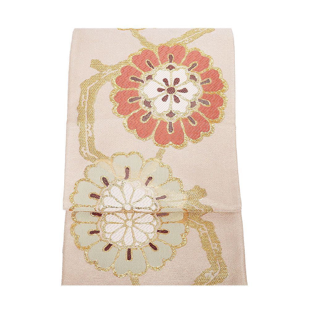 礼装用 袋帯 正絹 そくあや織 香彩菊花文 ベージュ 金 菊花文 Lサイズ F 8378 レディース シルク フォーマル ギフト
