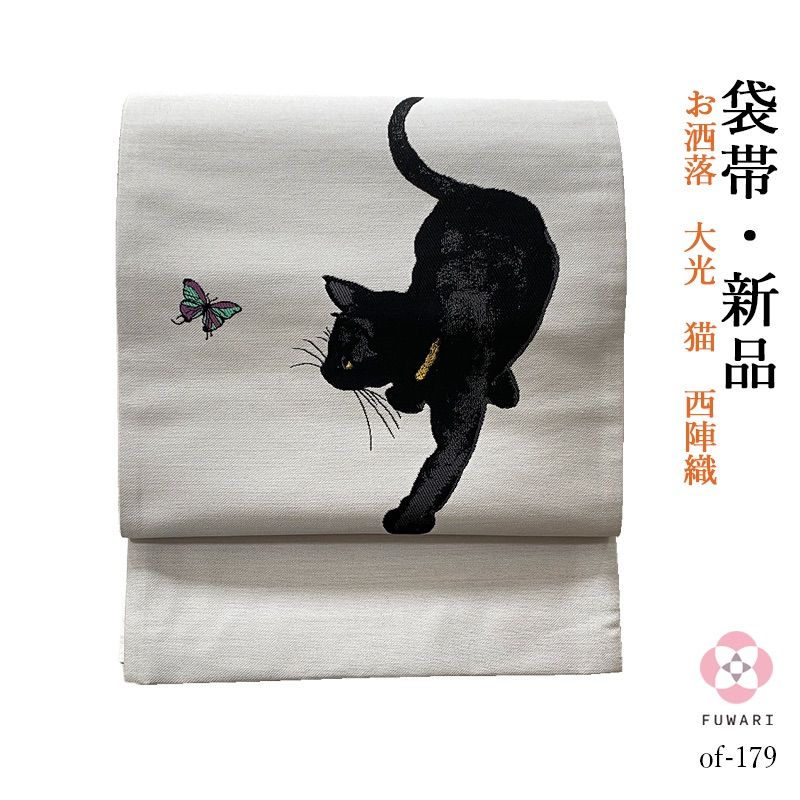 お仕立て上がり お洒落 大光 猫 西陣織 正絹 袋帯 obx 44