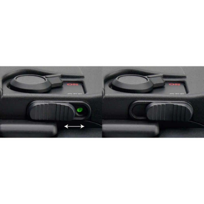 スライドスイッチで簡単に防振のON・OFFが切り替え可能。誤操作での電池の消耗をなくすため、10分のオートオフ機能も搭載。