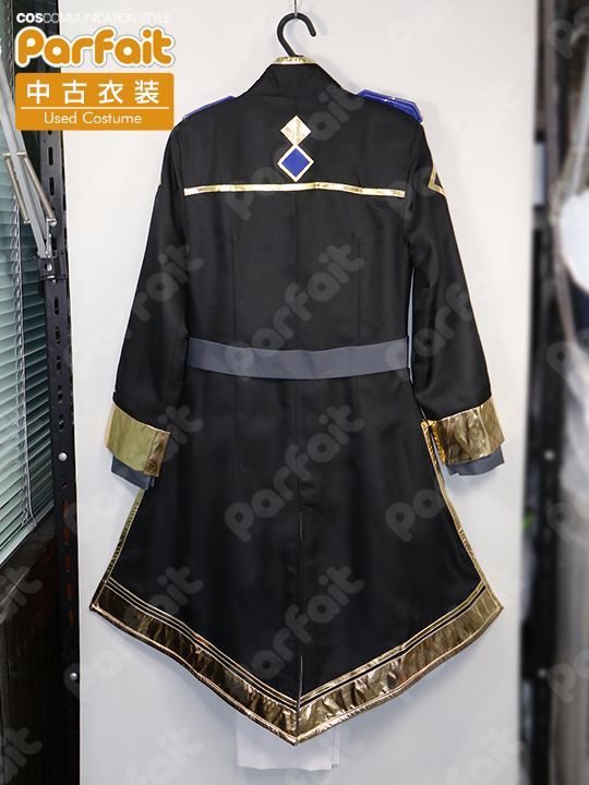 靴とウィッグが付属したユニット衣装です。ズボンは既製品の衣類が付属しておりウエスト約73cmです。スカーフ類はサテン生地で作られており、腰ベルトに腰布が一体化しています。金ラインやブーツは合皮製で状態は比較的良好ですが、手袋の金合皮にやや光沢剥がれが見られます。ブーツの側面に若干擦れ跡があります。(2026/2時点)ウィッグは毛髪にカット加工があり、毛先などに整髪料が残っています。