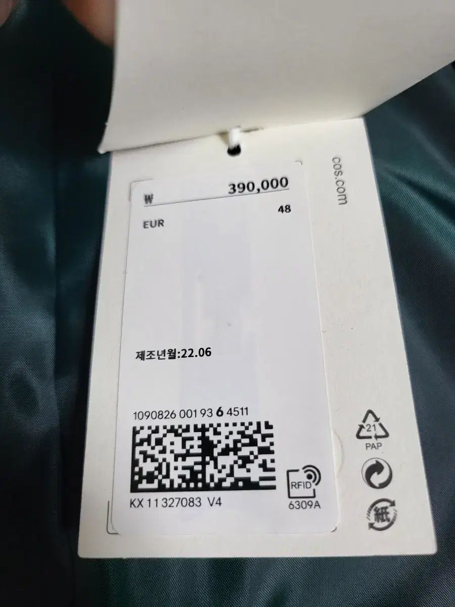 タグ付き COS ダークグリーン セットアップです。