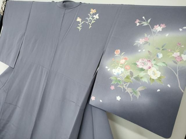 平和屋着物 訪問着 友禅 草花文 暈し染め 正絹 ud