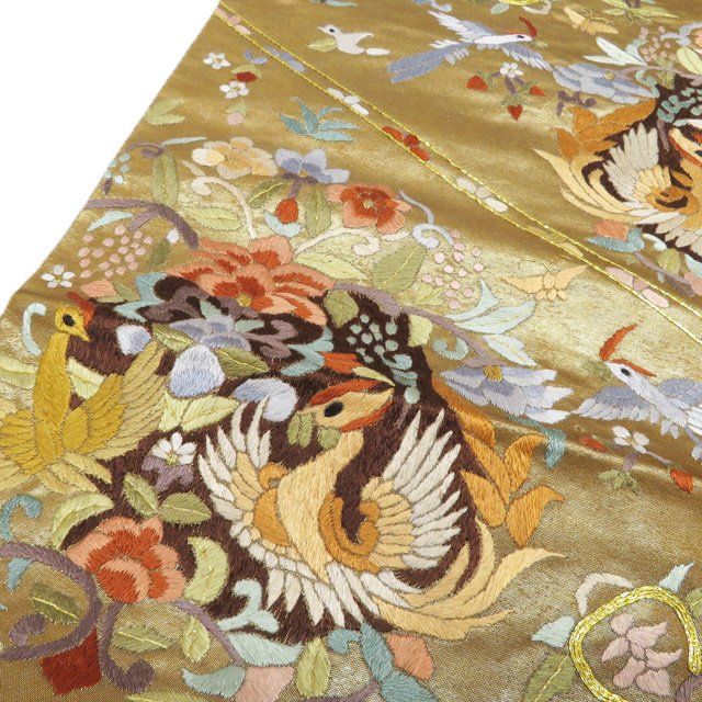 特選 袋帯 正絹 フォーマル 六通 仕立て上がり 金駒刺繍 蘇州刺繍 中国刺繍 花鳥模様 箔糸 多色 金 きもの北條 A 1290-15